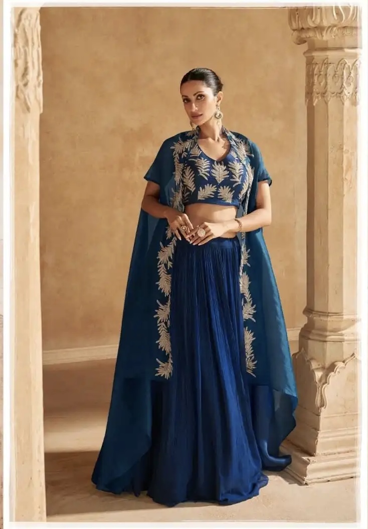 PREMIUM REAL CHINON SILK ( PURE HANDWORK ORGANZA SILK JACKET WITH HANDWORK SILK BLOUSE AND CHINON SILK LEHENGA WITH CANCAN )