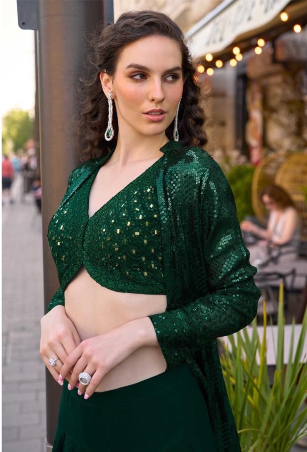 FULL HEAVY LOOK FRONT AND BACK EMBROIDERED FLOOR LENGHT JACKET WITH EMBROIDERED BLOUSE AND PLAZZO