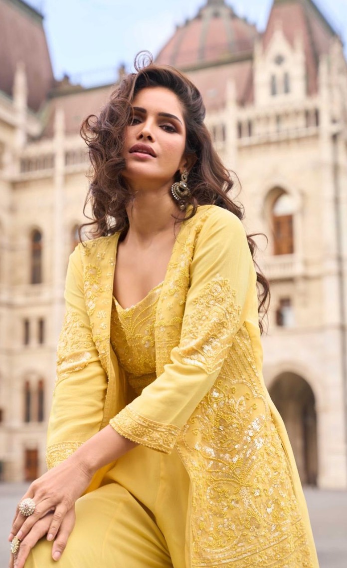 HEAVY EMBROIDERED BEADS WORK FRONT AND BACK SHRUG WITH EMBROIDERED BLOUSE AND PLAZZO